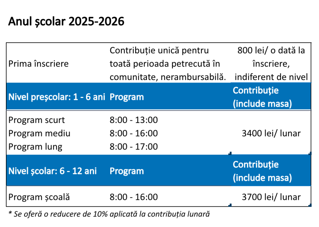 o Susținem cunoașterea mediului copilului dvs. printr-o activitate părinte-copil de 2 ori pe an (comunitățile de 3-6 și 6-12 ani).
